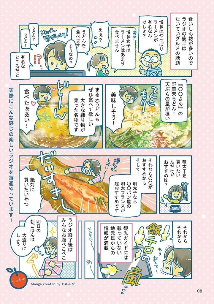 コミュニティの楽しさが伝わるよう画面の明るさ、また紹介場所の良さがわかるよう食べ物の絵に力をこめました。